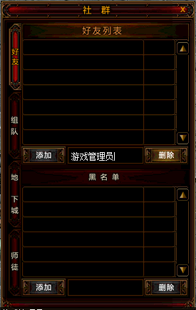 当你按下【添加】按钮后,光标将闪动,输入玩家角色名后敲下回车键即可添加好友